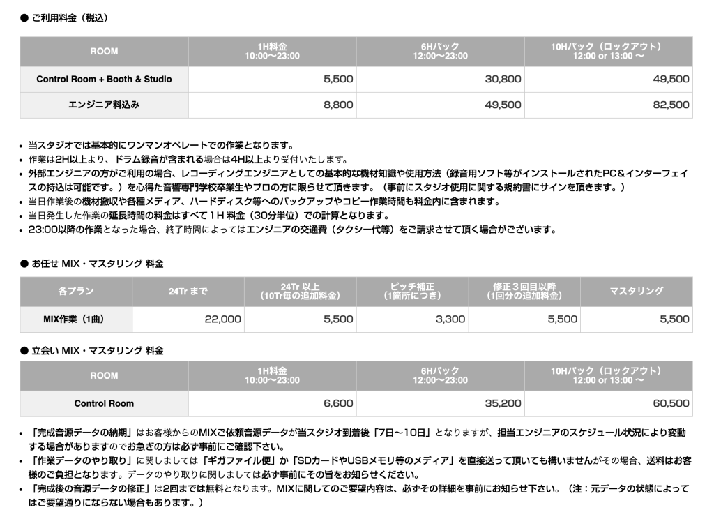 令和8年1月より、 以下の内容にて料金の改定を行います。 お客様におかれましては 何卒ご理解の程よろしくお願い致します。 マザーハウス レコーディングスタジオ