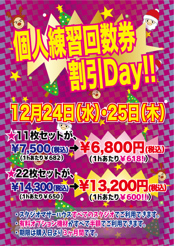 個人練習回数券割引Day!! 12月24日(水)25日(木)